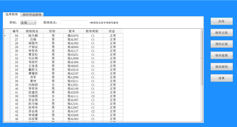 3、配車(chē):對(duì)教練員進(jìn)行配車(chē)